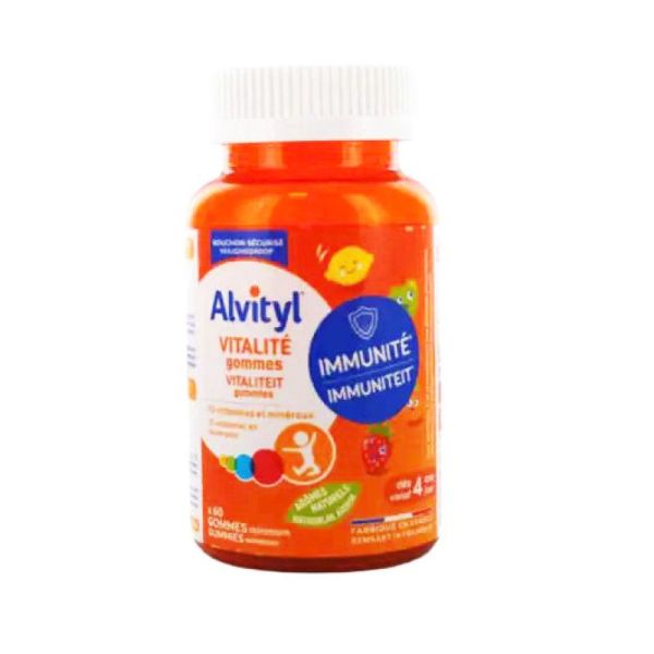 Sirop de Glucose, Sucre, Vitamines C, B3, E, B5, B2, B6, B1, B9, B8, D3, Gélifiant : Pectines, Acidifiant : Acide Citrique, Huile Végétale de Coprah, Agent d'Enrobage : Cire de Carnauba, Arômes, Colorants : Chlorophylles et Chlorophyllines, Anthocyanes, Curcumine, Extrait de Paprika.